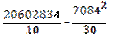 суми QUOTE (Σxi)2=70842=