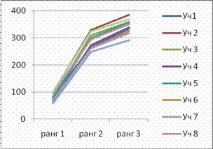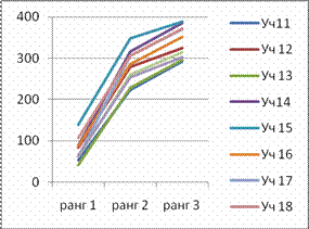 Рис. 10 Графіки змін ранжованих індивідуальних показників учнів у тестах зрізів