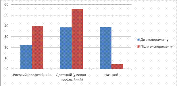 Рис. 4. Рівні "фінансової грамотності" керівників ЗНЗ до початку та після проведеного експерименту